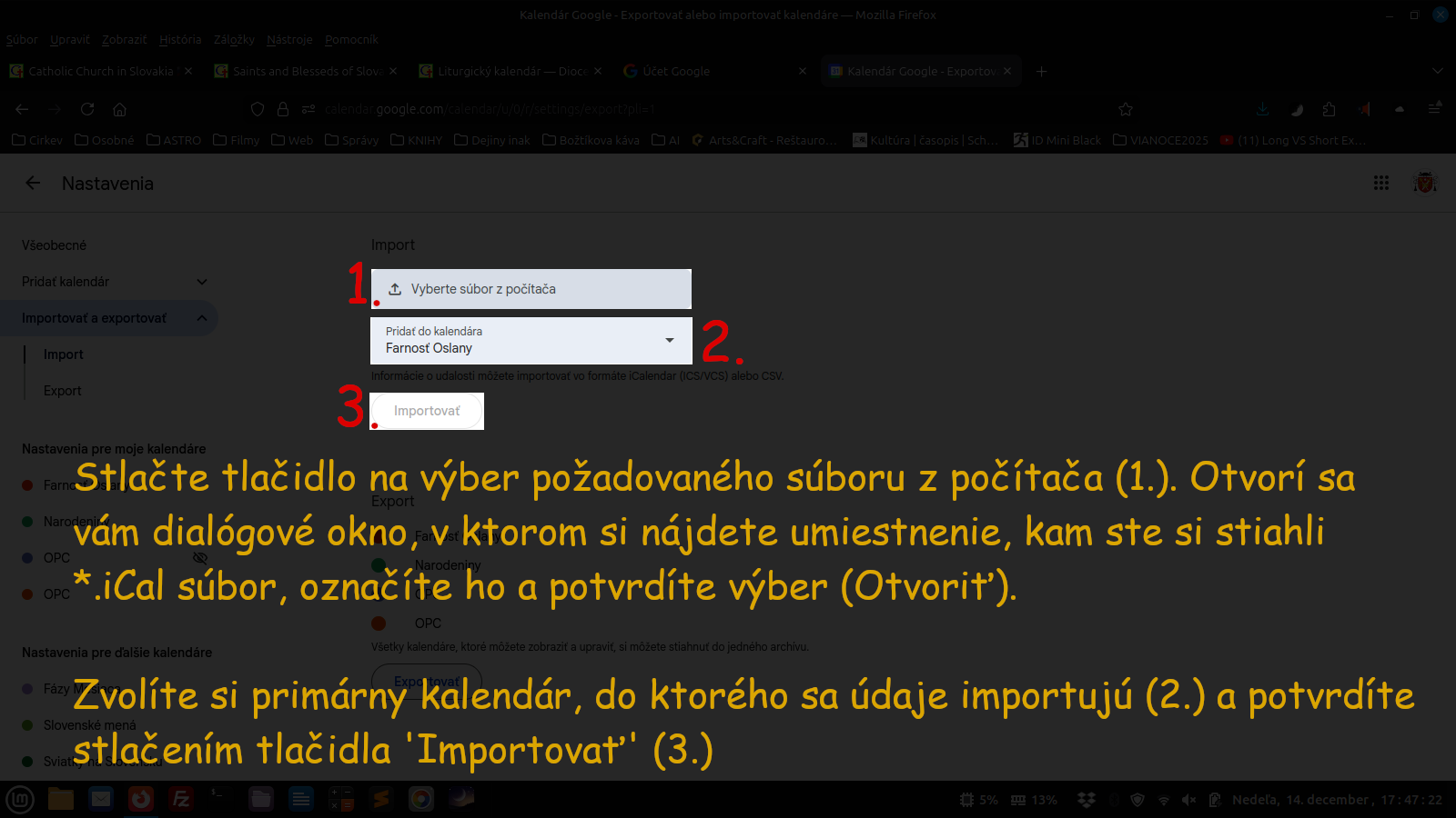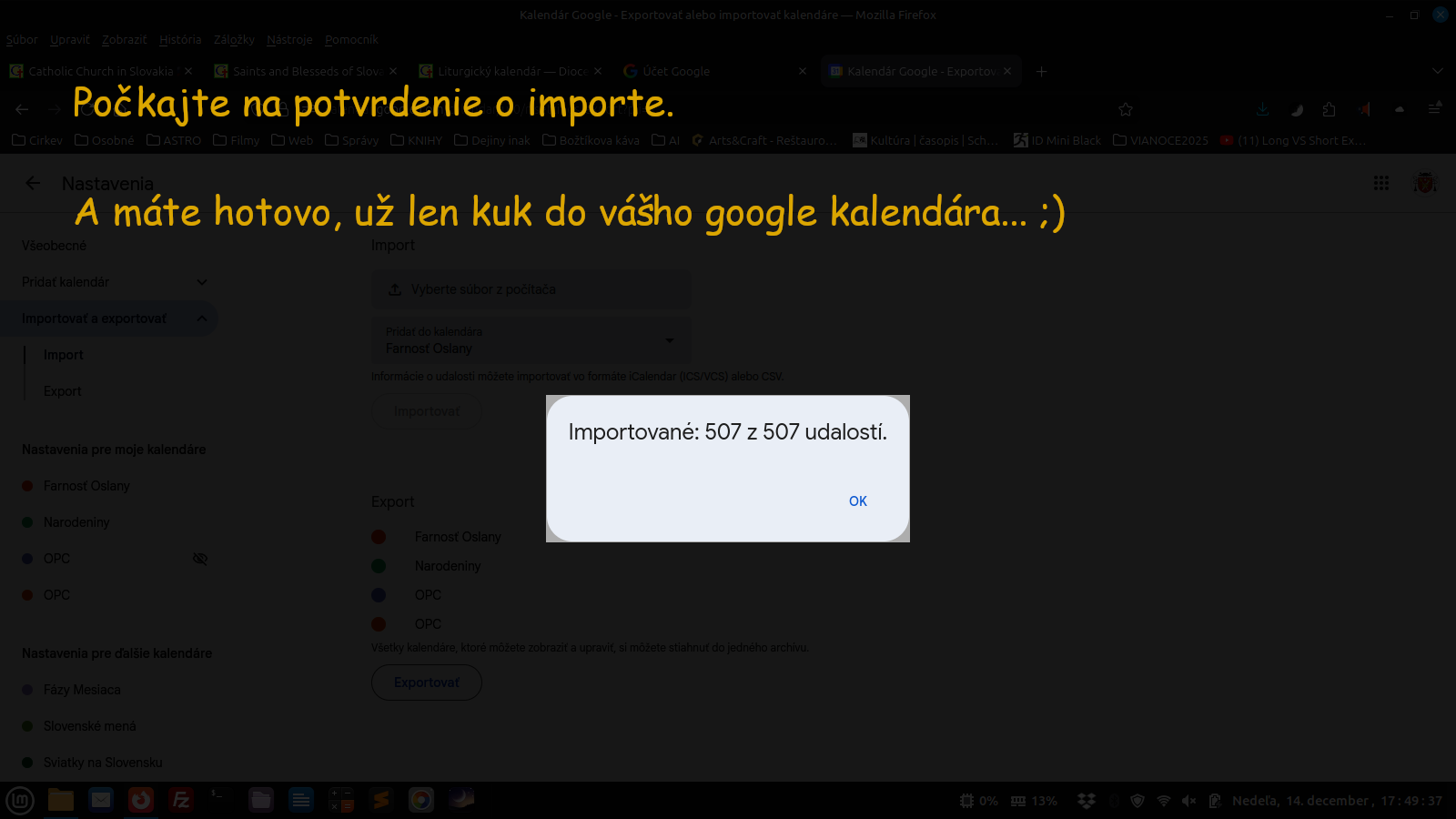 Ak si viete upravovať udalosti vo svojom Google kalendári, ľahko si teraz na importovaných udalostiach liturgického roka pridáte pripomienky na prikázané sviatky.